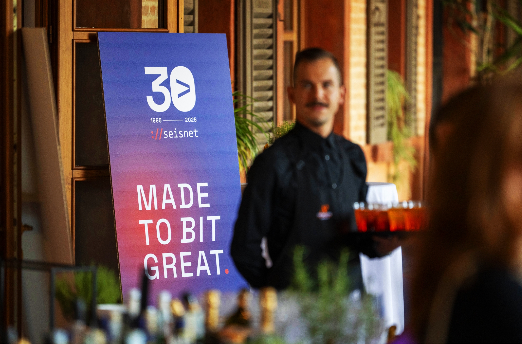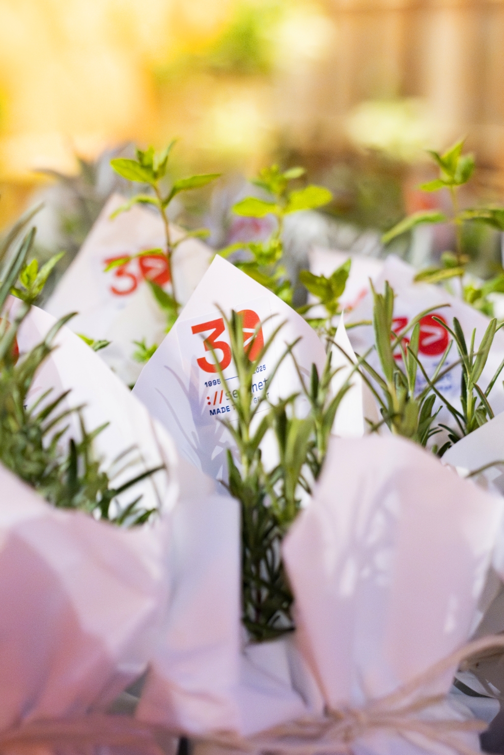 Per celebrare i 30 anni di Seisnet abbiamo sviluppato un’immagine coordinata dedicata, con logo e claim su misura, e un percorso comunicativo che ha accompagnato l’evento dalla fase di teasing all’esperienza in presenza. Il branding fisico ha incluso gadget sostenibili — tote bag, bloc notes e piantine aromatiche — pensati sia per l’allestimento sia come omaggio finale agli ospiti. In collaborazione con il team Seisnet abbiamo curato anche l’organizzazione dell’evento, coordinando fornitori, allestimenti, catering e logistica, per creare un’esperienza coerente, coinvolgente e memorabile.
